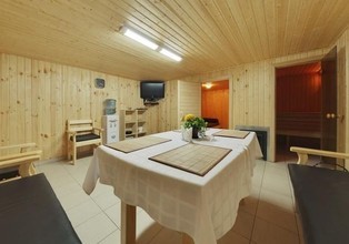 Массажное кресло, спутниковое TV, DVD, караоке и музыкальный центр, бар, европейская и восточная кухня и бесплатная охраняемая парковка на территории комплекса. И конечно же разные виды парной: русская, финская, турецкая и инфракрасная. Ну, а после парения можно расслабиться и поплавать в гидромассажном SPA-бассейне с подсветкой или поиграть в бильярд, настольный теннис или футбол.